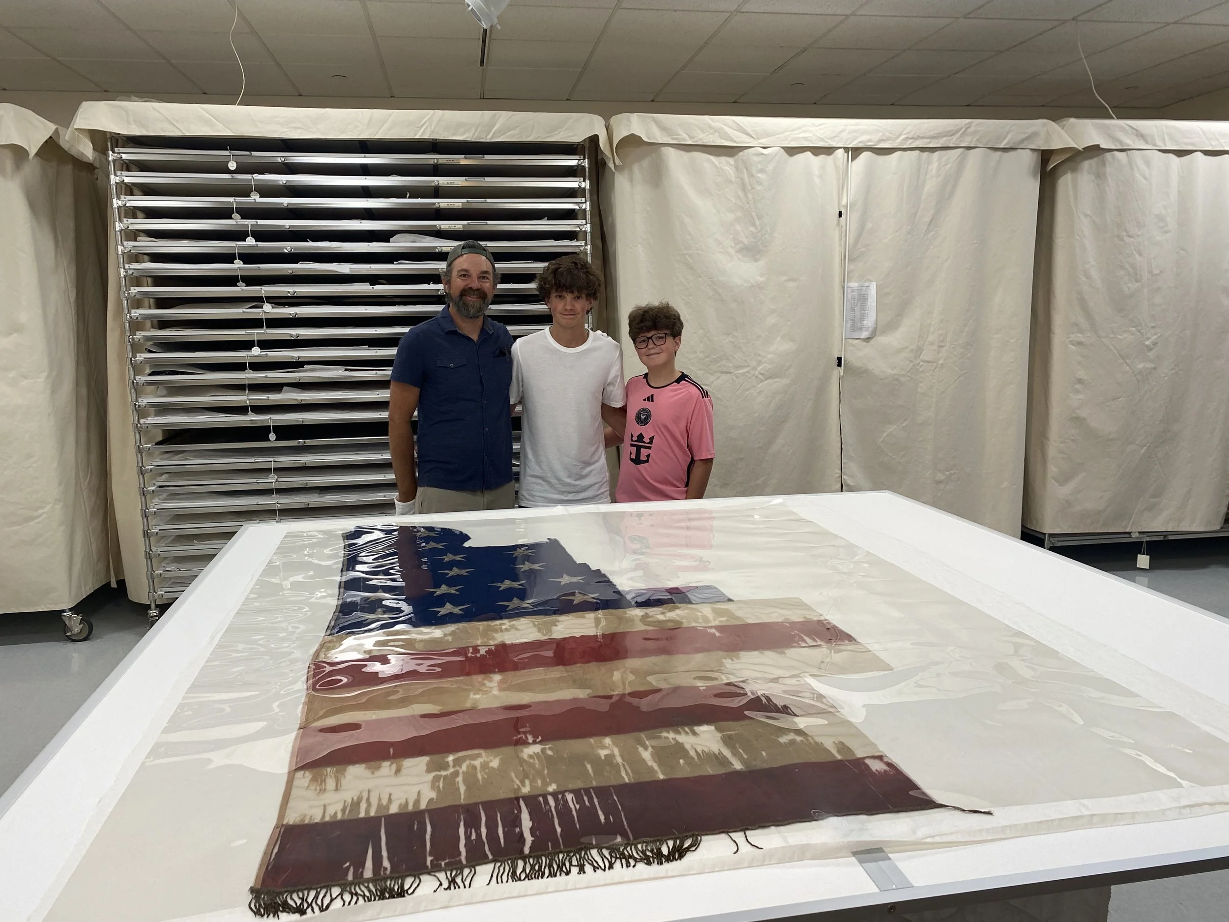 Save the Flags was honored to host the Clor family for a visit to the archival flag storage space at the state museum on Monday, August 4, 2025. Trevor Clor, a teacher at Grosse Pointe Academy, has spent his career dedicated to imparting to his students his vast knowledge of U.S. history, including organizing and leading groups of students to historic sites and many battlefields. Trevor was selected this summer to join 100 teachers from across the world at the prestigious Gettysburg Teacher Institute sponsored by the American Battlefield Trust . We are indebted to teachers like Trevor, who daily instill in our youth a respect and passion for history.